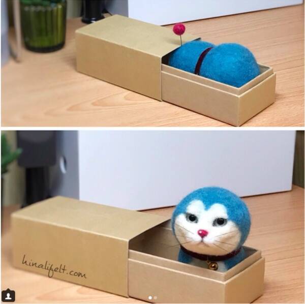 羊毛フェルトで制作したリアル猫顔風ドラえもんに噴き出す人続出 おたくま経済新聞