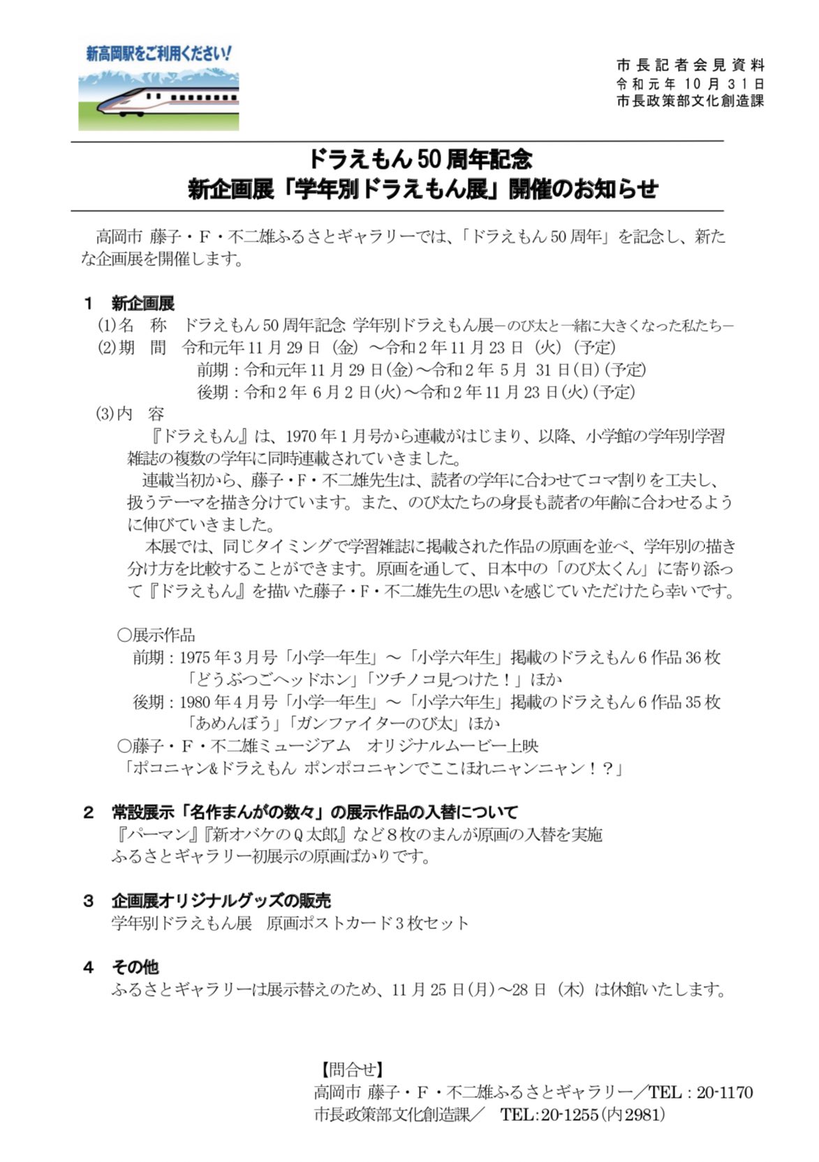 おしらせ 高岡市 藤子 f 不二雄ふるさとギャラリー part 2