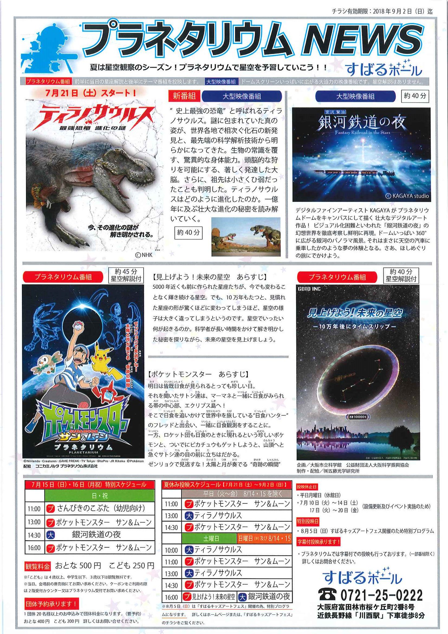 すばるホール sur twitter 富田林市すばるホール プラネタリウム字幕投映 本日8月13日 日 のプラネタリウムは全番組字幕付きで投映します 11時 14時 ドラえもん 星空生解説あり 13時 15時 妖怪ウォッチ すばるホール 富田林市 プラネタリウム