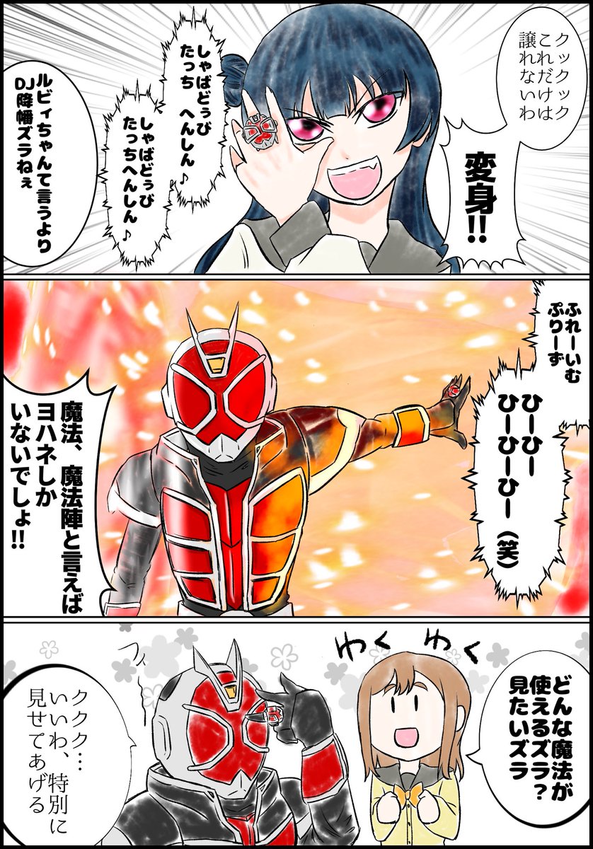 鈍器ィ コング on twitter よしまるでライダーネタ 今回はウィザード とドラえもんネタを少々 オチの為にいつもより長くなったし満足いくパンチラにクッソ時間かかったw lovelive sunshine