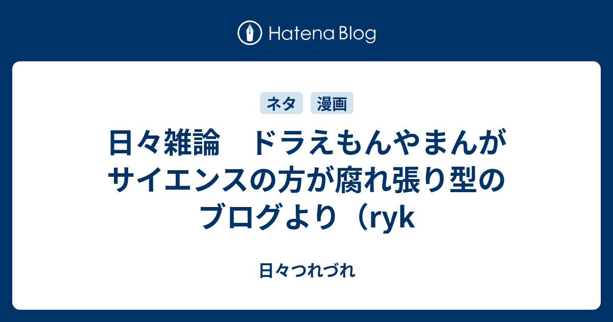 日々雑論 ドラえもんやまんがサイエンスの方が腐れ張り型のブログより ryk 日々つれづれ