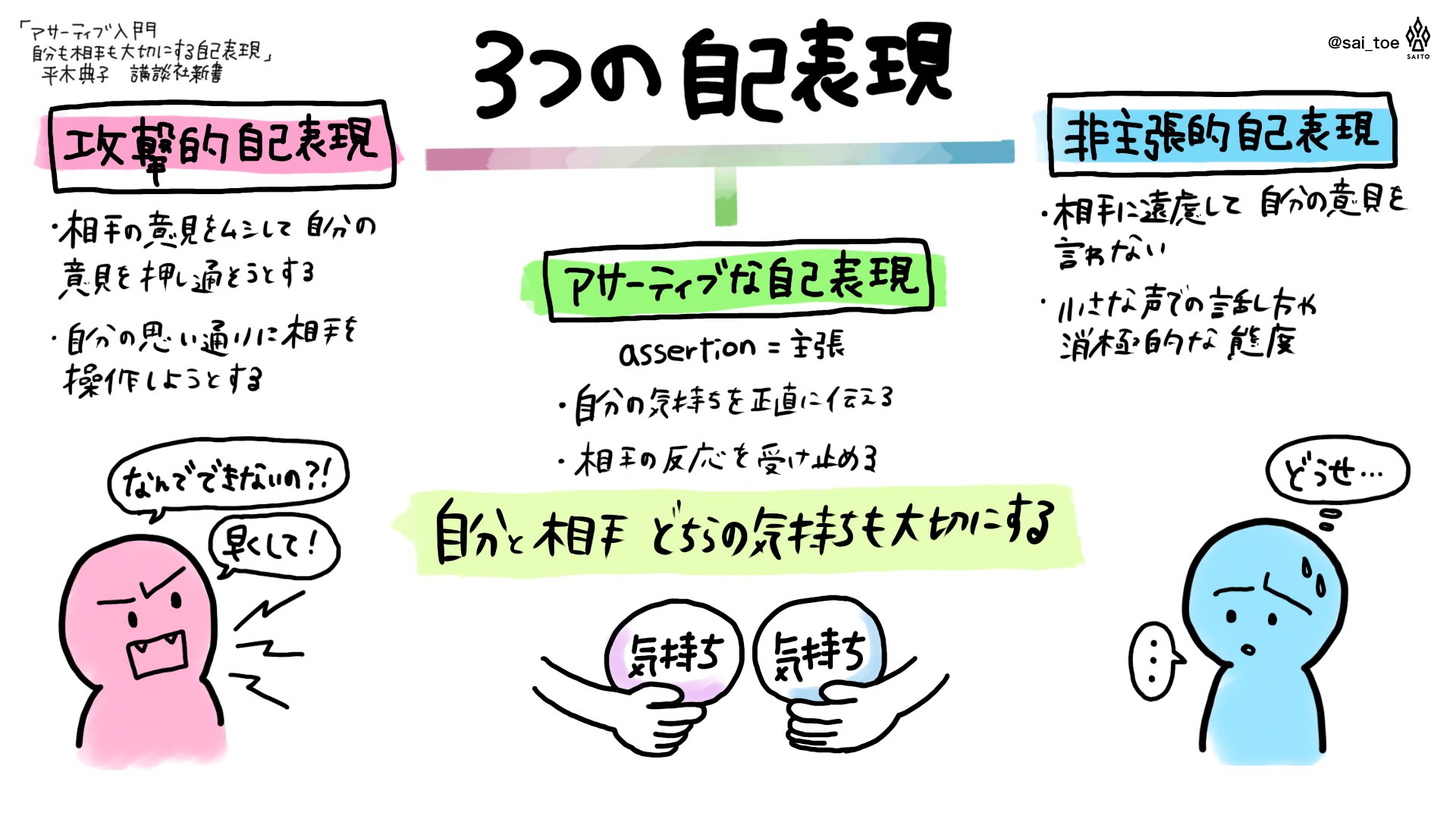 sai toe on twitter 今年はアウトプットの数を増やしたい まずは年末年始の課題図書のまとめ 職場の諸問題を解決できるといいのだが アサーション入門 自分も相手も大切にする自己表現 ipad 図解 グラレポ 本レポ 平木典子 講談社新書