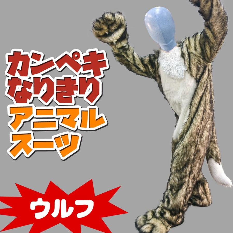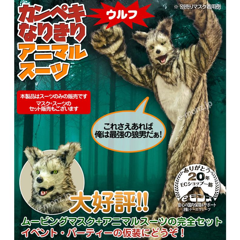 口が連動しリアルに動く あなたも 超ヒューマンな動物キャラに大変身 セットでお得 かんぺきなりきりアニマルスーツ アニマルマスク スーツセット wolf ウルフ