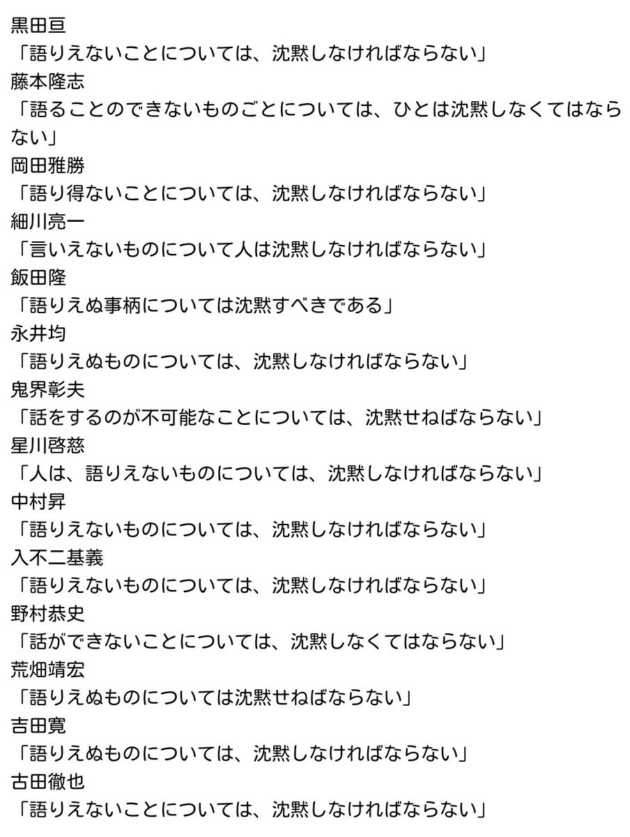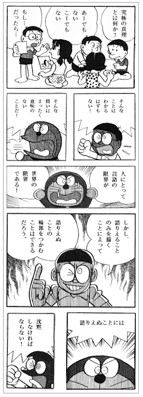 諸隈元シュタイン on twitter 原文に wovon daruber とあるからか 訳者の全員が については という表現だけは例外なく使用する中 意外すぎる人物がその慣例を破っていた 大長編ドラえもん のび太と論理哲学論考の共訳 語りえぬことには 沈黙しなければ