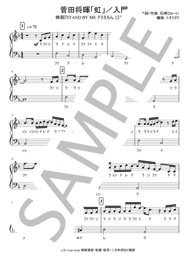 今すぐ使える無料楽譜 星野源ードラえもんー2楽譜 ピアノ塾