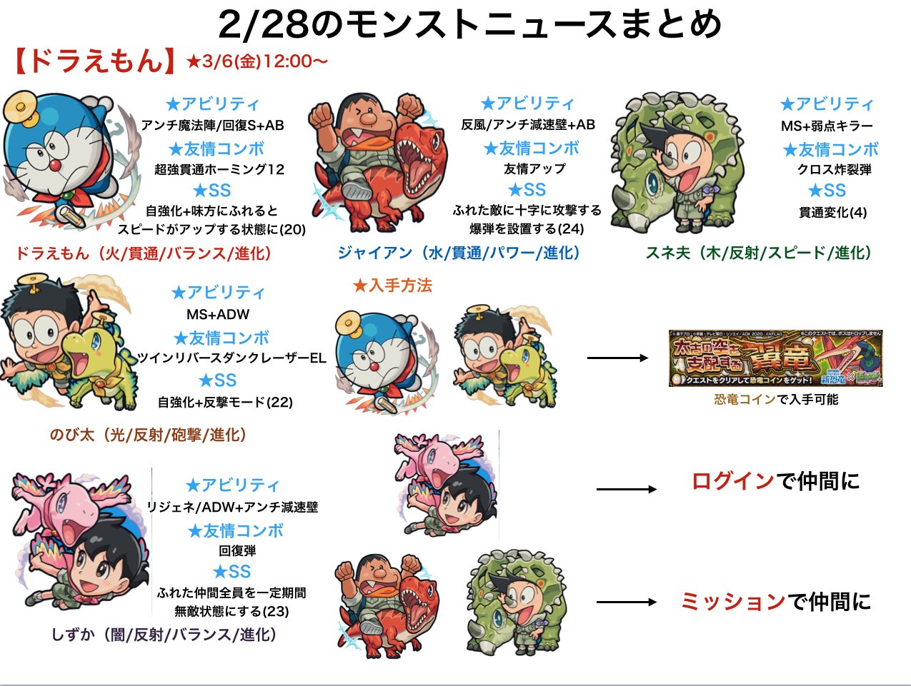 映画ドラえもん のび太の新恐竜 コラボ しずか ミュー ジャイアン ゴル スネ夫 トップ登場 クロス炸裂弾や友情アップ 味方を無敵状態にできるss など貴重なアビリティを所持 モンスト公式