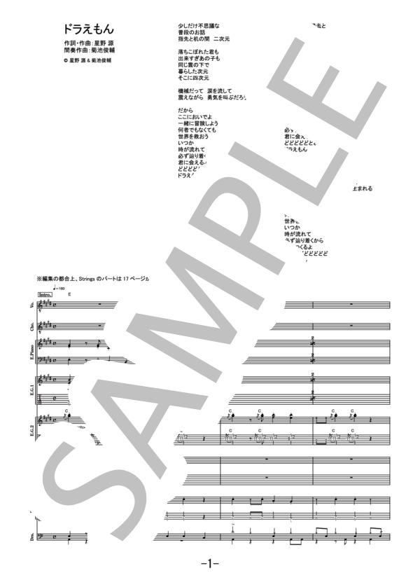 楽譜 ドラえもん 星野源 バンドスコア