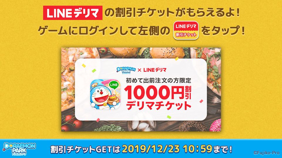 line ドラえもんパーク ログインして デリバリーサービス lineデリマ の初回1000円割引チケットをチェック line game公式ブログ