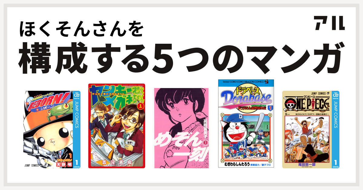 ほくそんさんを構成するマンガは家庭教師ヒットマンreborn ヤンキー君とメガネちゃん めぞん一刻 ドラベース ドラえもん超野球 スーパーベースボール 外伝 one piece 私を構成する5つのマンガ アル