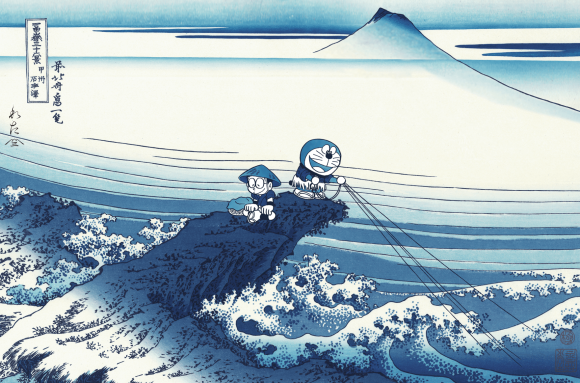 時空を超えコラボ 北斎作品がモチーフのドラえもん浮世絵