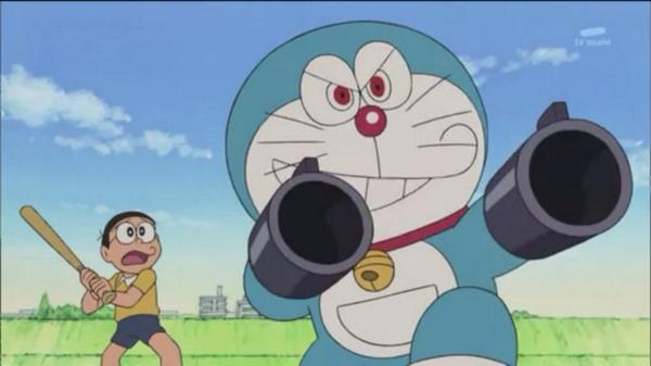 ドラえもんがティラノサウルスに向かって空気砲を撃つgif画像 rodrigo architecto gifmagazine
