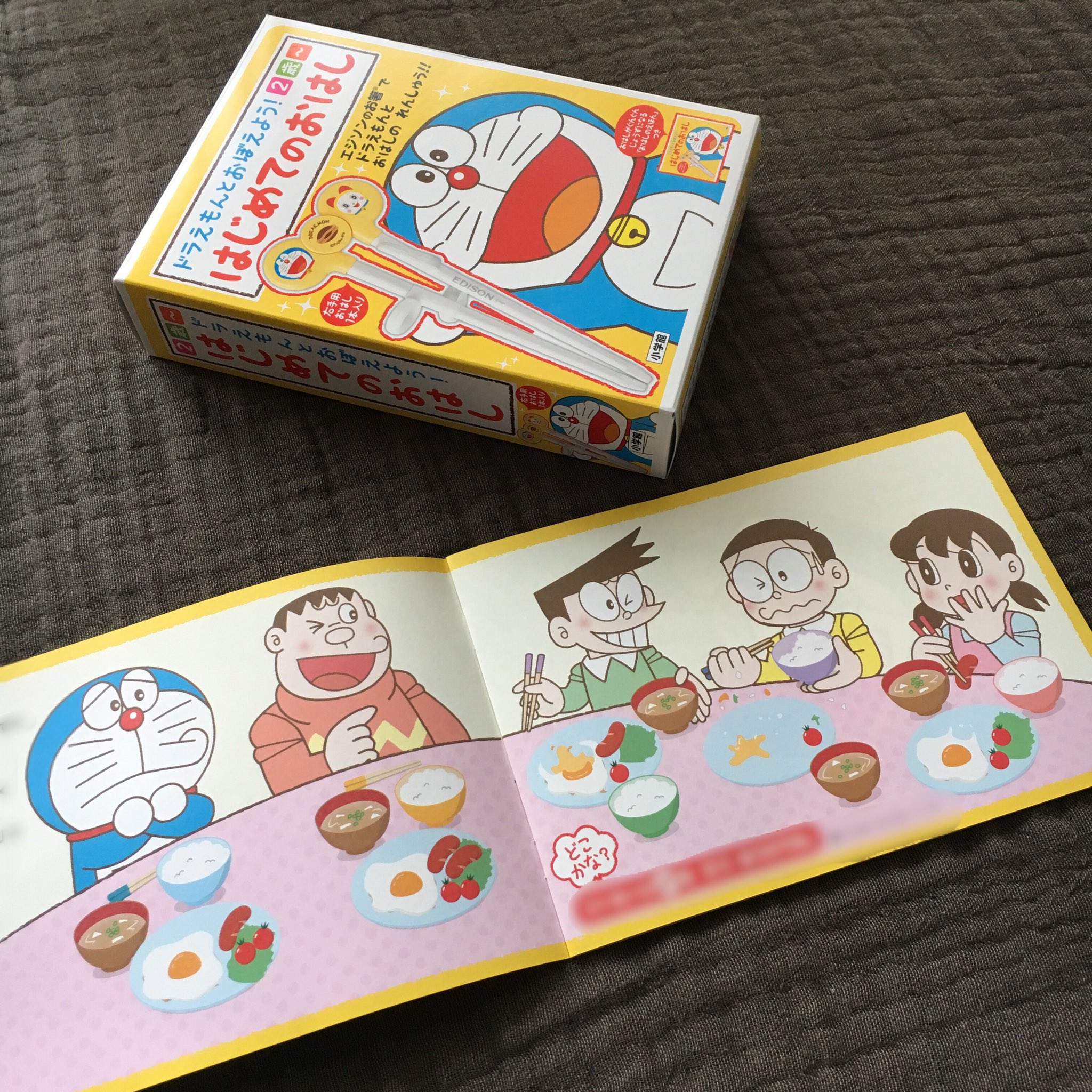 m r めばえる v twitter お仕事 ドラえもんとおぼえよう はじめてのおはし でイラスト描かせていただきました のび太くんや ドラえもんのキャラクターたちが m rが作ったご飯を食べてくれています 笑 はじめてのお箸の練習にご活用していただけたら嬉しい