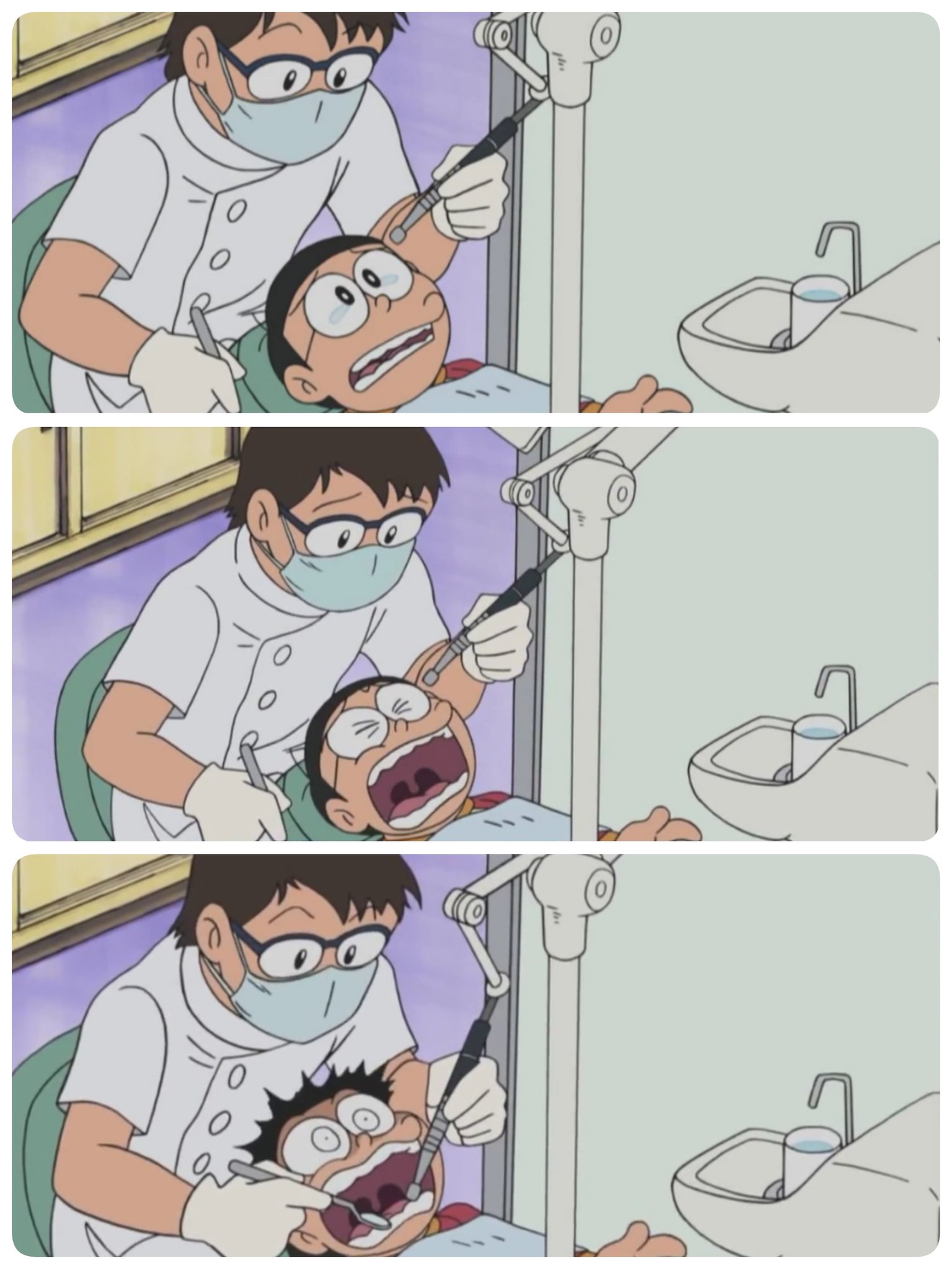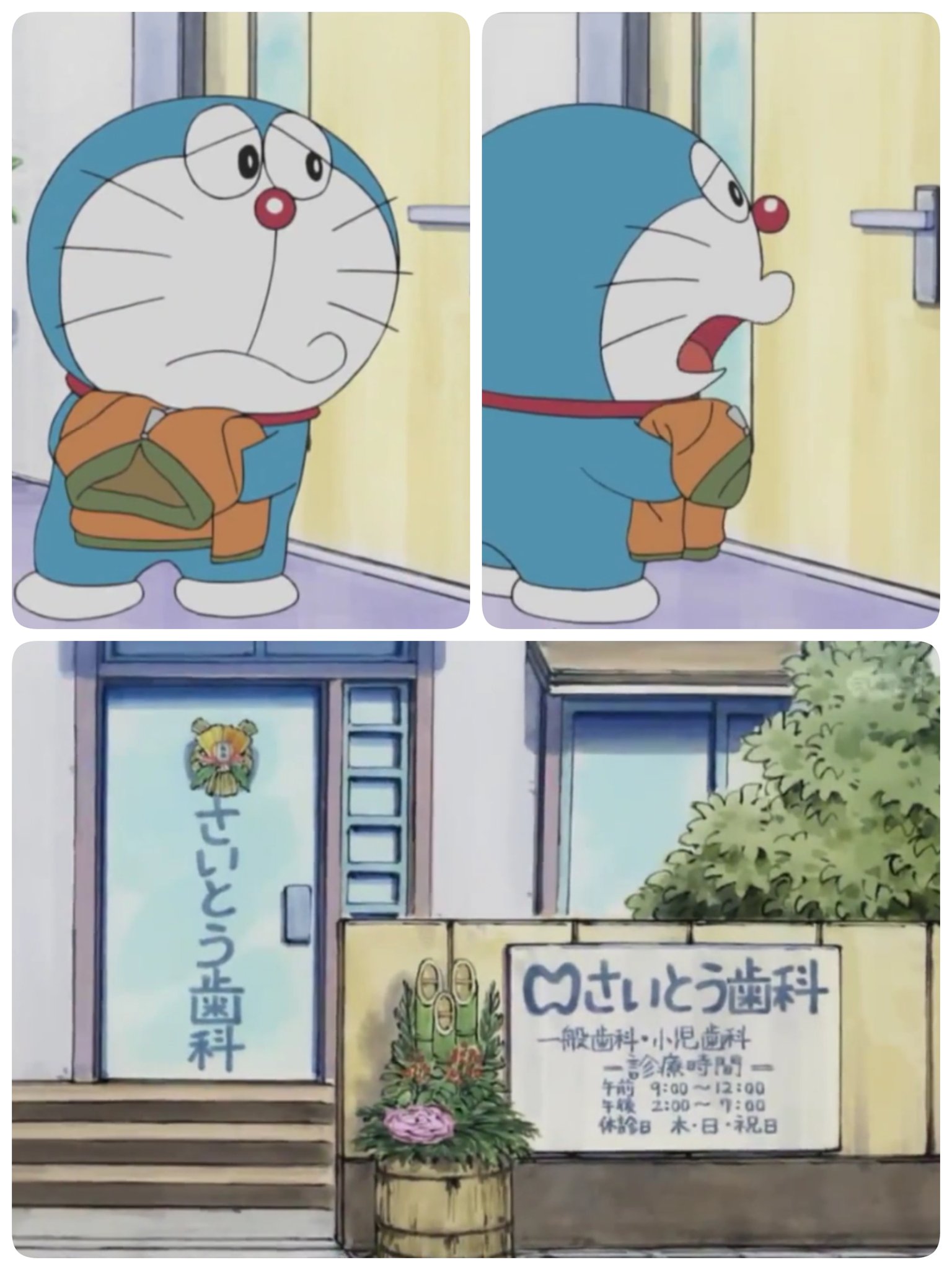 dn a twitteren 6月4日は 虫歯予防デー 長い長いお正月 より おせんべいをかじった瞬間激痛が 新年早々虫歯治療に行くのび太 さいとう歯科は祝日お休みなのに快く 治療をしてくれました ドラえもんは付き添いで待合室で心配そうに待っています