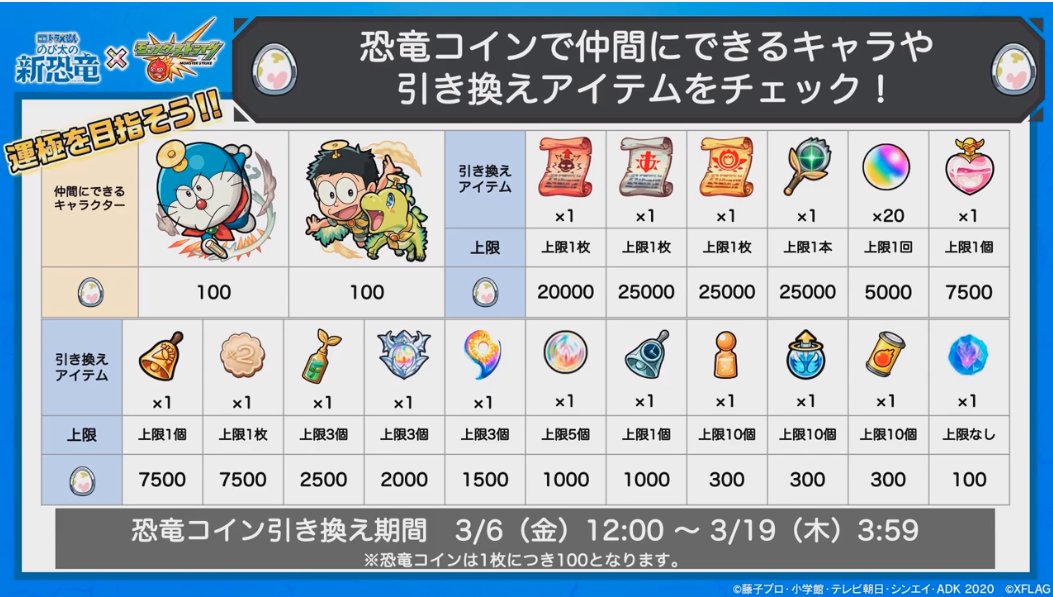 とんぬん on twitter ドラえもん のび太は恐竜コインで仲間にしよう 引き換えアイテム モンストニュースurl https t co u1muxzgwip