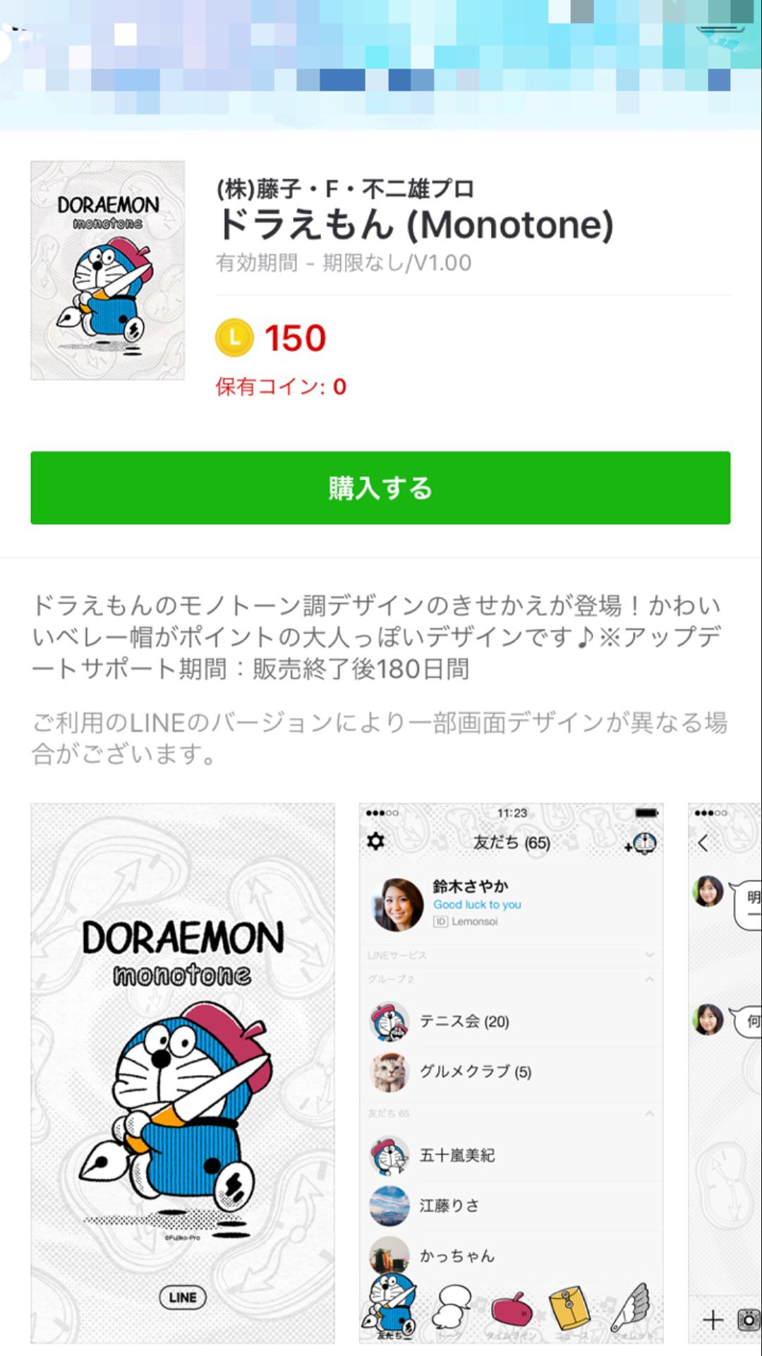 line着せかえの購入方法と変更後の雰囲気 ドラえもん