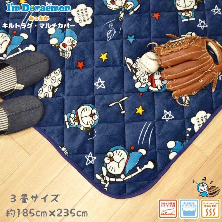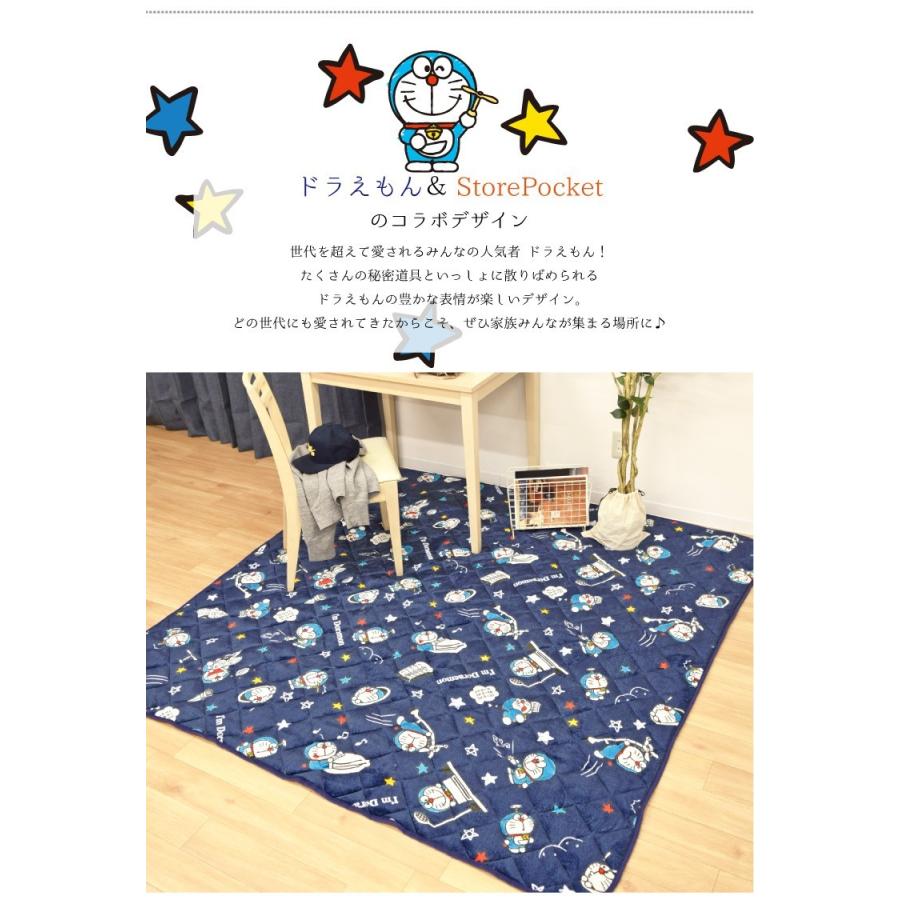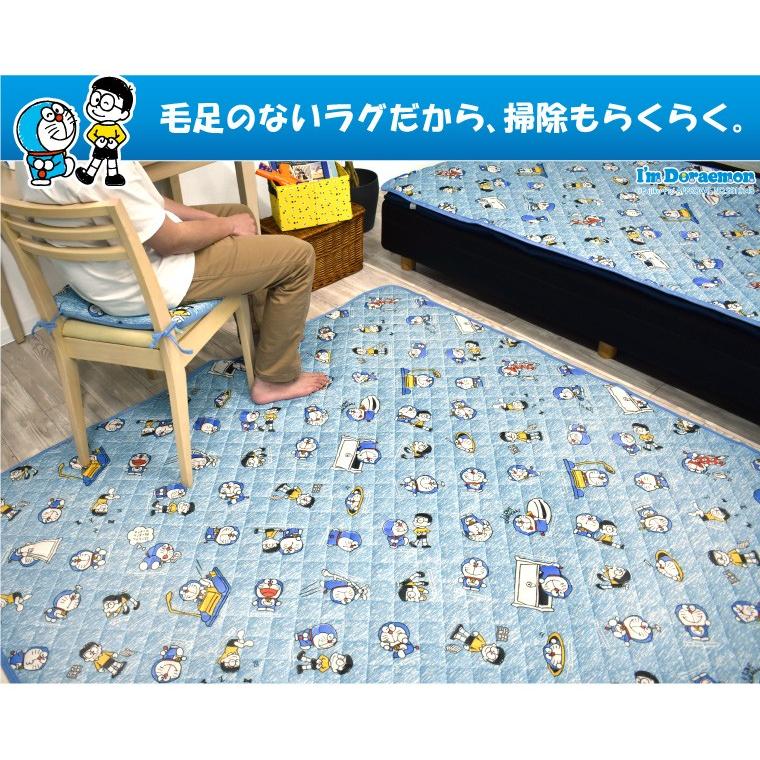 ドラえもん ラグ 3畳 在宅勤務 キルトラグ カーペット 約185 235cm ドラえもん ネイビー 子供部屋 小学館 男の子 洗える ホットカーペッ