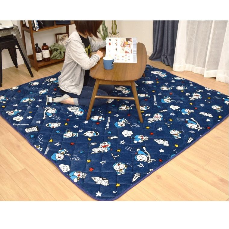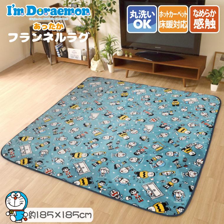 ラグ ラグマット 2畳 185 185cm カーペット ドラえもん ネイビー ホットカーペットカバー 洗える 柄 こたつ敷き オールシーズン 子ども プレゼント かわいい ふわふわ フランネル ホットカーペット対応 awch 在宅 勤務 ss3 ラグ 寝具 雑貨のストアポケット