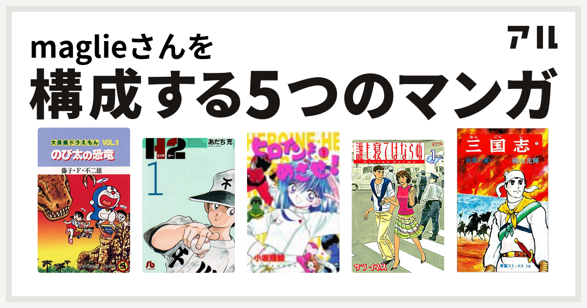 maglieさんを構成するマンガは大長編ドラえもん h2 ヒロインをめざせ 誰も寝てはならぬ 三国志 私を構成する5つのマンガ アル