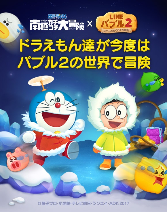 line バブル2 映画ドラえもん のび太の南極カチコチ大冒険 とコラボ 限定スタンプをゲットしよう line game公式ブログ