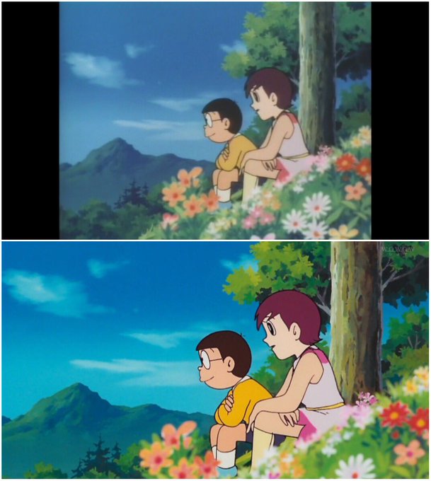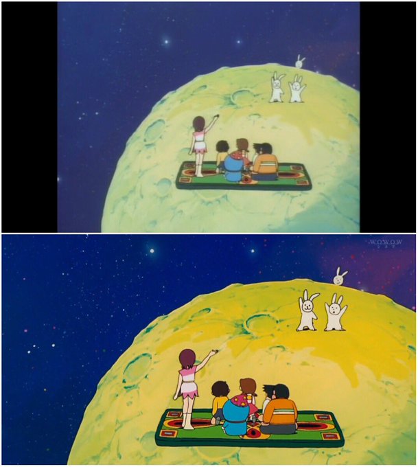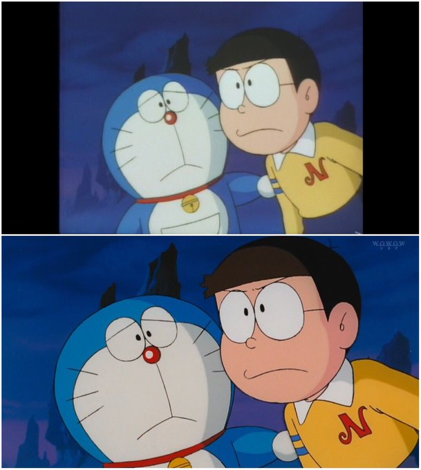 ドラえもん同好会 on twitter wowowの映画ドラえもんまつり 高画質デジタルリマスターhd版で 初期作品は劇場公開時の16 9ビスタサイズで放送 dvd版 のび太の恐竜 と比べると 背景の上下に余白を感じます 37作一挙放送 史上最大の映画ドラえもんまつり 映画